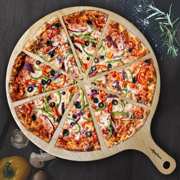 Une planche à pizza ronde de la collection Manufrance. Planche de sortie de four ou de présentation en bois contreplaqué, elle est très pratique pour présenter et découper vos pizzas, tartes, tourtes, flammenkueches et autres... Une touche d'authenticité et de tradition qui fera la différence et éveillera la curiosité de vos convives. Peut également s'utiliser comme une planche de présentation pour la charcuterie, le fromage, les antipasti ou tout autre amuse-bouche. Attention ne passe pas au lave-vaisselle : Ne doit pas être trempé dans l'eau, préférez un nettoyage rapide, brossez la ou raclez la sous un filet d'eau, puis un séchage immédiat avec un torchon propre et sec. Fabriqué en France, en région Auvergne Rhône Alpes.