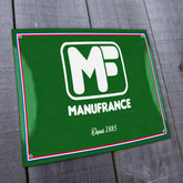 Une plaque émaillée décorative aux couleurs de Manufrance ornée du fameux logo MF. Cette plaque aux accents vintage est un joli clin d'oeil aux anciennes plaques publicitaires d'antan de la manufacture pour donner à votre intérieur une touche rétro authentique au charme intemporel. La plaque émaillée Manufrance : un indémodable et indispensable accessoire déco vintage pour une ambiance authentique à la maison. Bombée et brillante comme autrefois et frappée de l'emblématique logo MF de Manufrance le charme rétro de cette reproduction authentique ne laissera personne indifférent. Historiquement la plaque émaillée était utilisée comme support publicitaire durant la première moitié du XX ème siècle et jusqu'aux années 50-60. Solide, durable et esthétique on les retrouvaient soit à l'extérieur soit à l'intérieur des magasins d'antan. Elles pouvaient aussi servir de panneaux avec des indications simples comme un numéro de maison, une plaque de rue, une licence IV pour les restaurants et bars,... La plaque Manufrance est fabriquée en France en émail véritable selon une technique traditionnelle et en a donc toutes les qualités : inoxydable, résistant à la chaleur, aux rayures, aux acides, aux graisses et aux détergents. Cet objet bénéficie du savoir-faire traditionnel d'un artisan émailleur. Plaque Manufrance en émail percée de 4 trous dans les 4 coins pour permettre de la fixer aisément à l'endroit voulu.