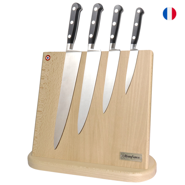 Le porte-couteaux magnétique en bois de hêtre Manufrance met fin aux longues minutes passées à rechercher au fond d'un tiroir LE couteau dont on a besoin ! C'est un bel objet pratique, solide et également décoratif à exposer en toute fierté sur son plan de travail. Fabriqué à la main et en France.