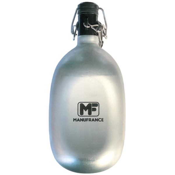 Sa forme particulière ovale spécialement étudiée permet une parfaite prise en main. Elle est équipée d'un système d'ouverture et de fermeture à étrier rapide et efficace et d'un bouchon à clip avec joint d'étanchéité (dont le remplacement est assuré).