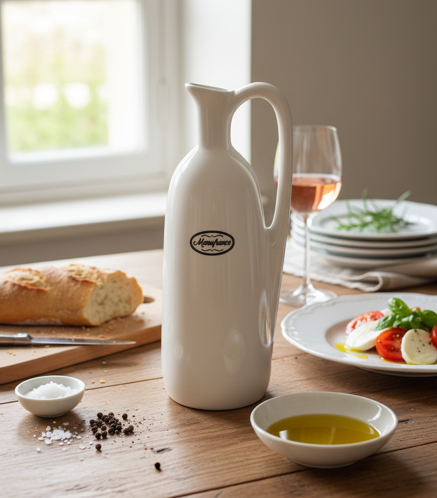 Fabrication 100 % française avec du grès blanc, cette bouteille offre une esthétique élégante et épurée, ajoutant une touche de sophistication à votre cuisine.