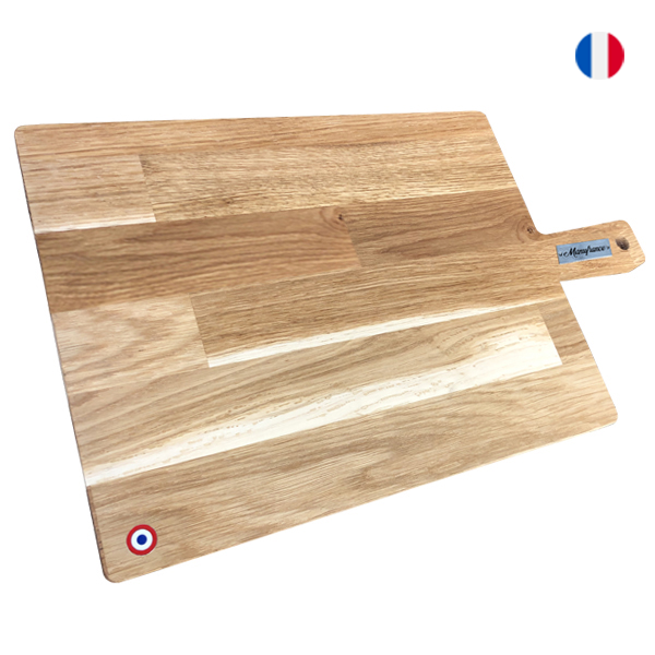 Planche à découper en bois de chêne. Ustensile quotidien dans la cuisine, convient elle également pour le service de vos apéritifs. Sa dimension (38 x 22,5 cm) lui permet d'être rangé dans un tiroir ou même de rester à portée de main dans la cuisine. Fabrication 100 % française en région Auvergne Rhône Alpes. Entretien : ne passe pas au lave-vaisselle. Préférez un nettoyage rapide avec une éponge et un peu de liquide vaisselle suivi d'un séchage immédiat avec un torchon propre et sec.