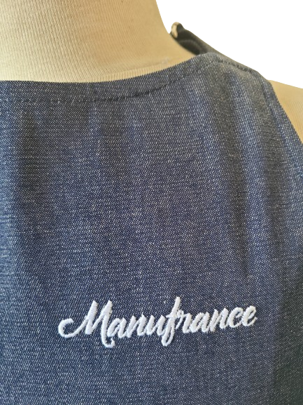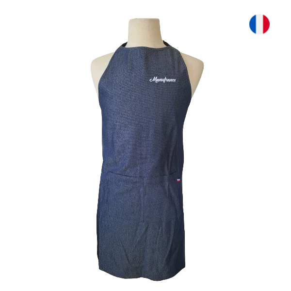 Un tablier de cuisine Manufrance, pensé pour vous et totalement fabriqué en France, plus exactement dans la Loire. Ce tablier 100% en coton élégant grâce à sa couleur "jean" et sa légèreté. Il vous permettra de cuisiner en intérieur ou en extérieur à l'occasion de vos soirées d'été ; vous pourrez même vous en servir pour faire du jardinage et éviter de vous salir. Il est équipé d'une poche séparée en deux parties, pour le rangement des torchons ou du matériel. Ses lanières modulables ont été pensées pour vous permettre de serrer votre tablier à votre taille ainsi qu'au niveau de votre cou. Sur la poche avant, un petit écusson bleu-blanc-rouge, pour rappeler que nos tabliers sont fabriqués en France. Conseil d'utilisation : laver le tablier à 30°. Sécher à l'air libre.