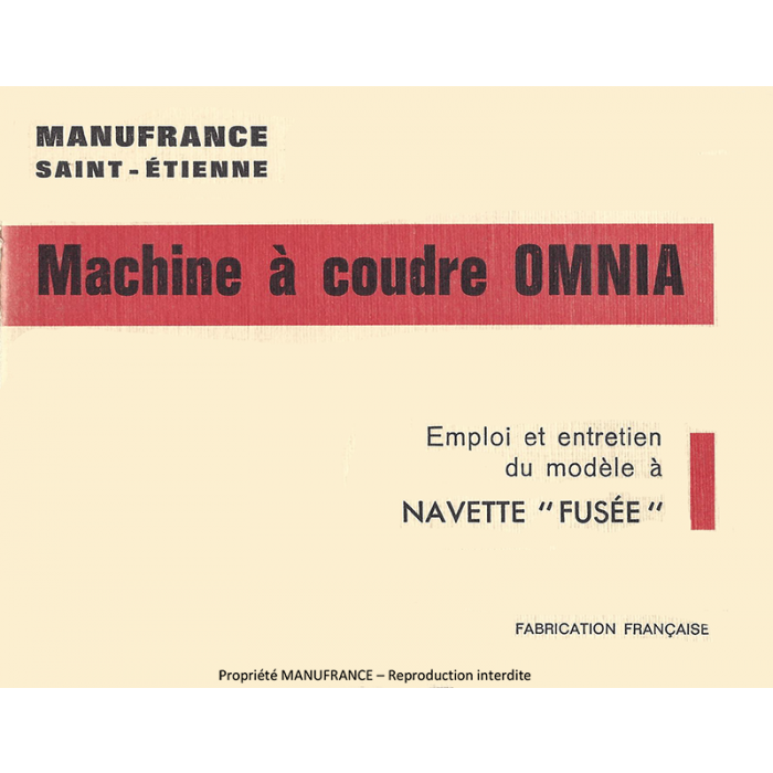 Notice d'emploi et entretien des modèles de machine à coudre OMNIA à navette fusée. Document réalisé à partir de l'originale. Cette notice est disponible en version numérique à ouvrir avec logiciel Adobe reader (format PDF), ou en version papier. Pour la version papier, vous recevrez la notice par courrier. Pour la version numérique, vous recevrez le fichier à votre adresse mail.