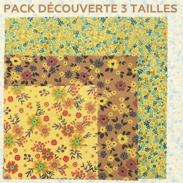 Objectif zéro déchet ! Ce pack découverte contient 3 COUVRES-TOUTS de tailles différentes et complémentaires : Taille S (20x20 cm.) pour un morceau de fromage, ou pour couvrir un petit bol de restes. Taille M (25,5x28 cm.) idéal pour emballer un sandwich ou couvrir un plat. Et enfin le COUVRE-TOUT taille L (35,5x33 cm.) pour couvrir un saladier ou emballer une tarte. Le COUVRES-TOUTS est fabriqué à la main à partir d'ingrédients naturels : tissu 100 % coton certifié écologique (label OEKO-TEX), cire d'abeille française (Département 06), résine de pin bio des landes, huile de jojoba. Chaque ingrédient joue ainsi un rôle primordial permettant une bonne conservation du produit (cf. savoir-faire).