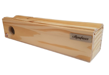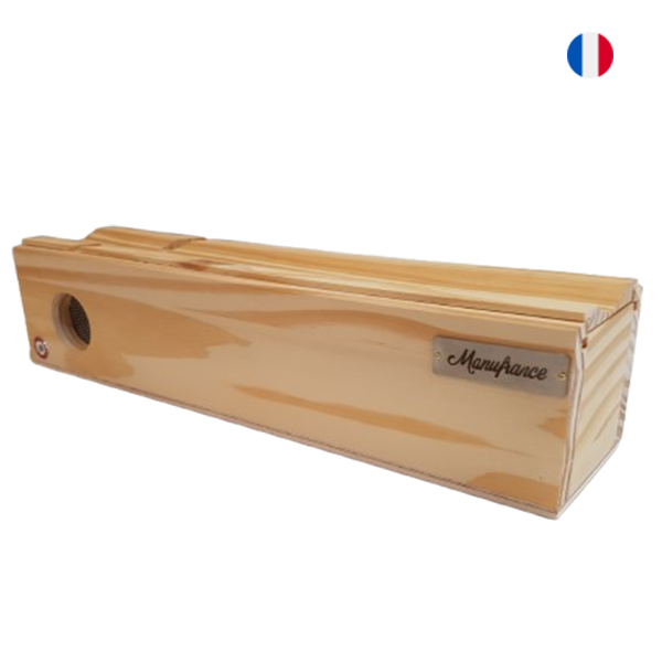 Une boîte à saucisson unique de grande qualité, pensée pour conserver le saucisson comme autrefois. Réalisée en pin (pour la boîte) et en peuplier pour une bonne régulation de l'humidité (fond de boîte). Elle se démarque grâce à l'épaisseur du bois qui a été augmentée, les belles veinures qui feront de cette boîte à saucisson un bel objet. La trappe est équipée d'un arrêtoir au bout, un procédé très pratique qui vous permettra si vous le souhaitez d'accrocher votre boîte au mur et d'avoir ainsi votre saucisson toujours à votre portée. La trappe est aussi équipée d'une rainure de découpe, ce qui en fait aussi une planche. La boîte est aussi protégée par un verni alimentaire et équipée d'une aération pour une meilleure conservation. Cet objet se garde brut, ne pas vernir, nettoyer à sec.