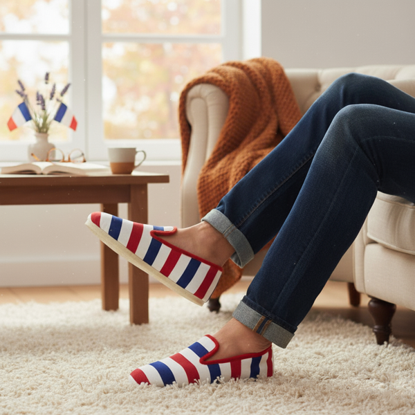 Conçues pour allier tradition et modernité, ces chaussons à motif tricolore bleu-blanc-rouge, offrent à vos pieds une douceur incomparable. Leur design intemporel et leur fabrication artisanale en font un choix parfait pour se détendre à la maison tout en restant élégant. Que vous soyez à la recherche d'un confort optimal ou d'un cadeau raffiné, les Charentaises Manufrance sauront répondre à toutes vos attentes. Offrez-vous un moment de douceur et de bien-être avec ces chaussons authentiques, conçus pour durer et embellir votre quotidien.
