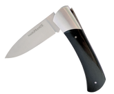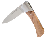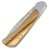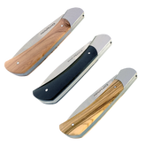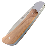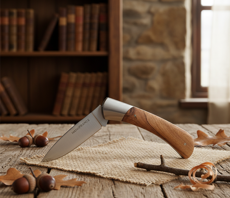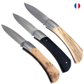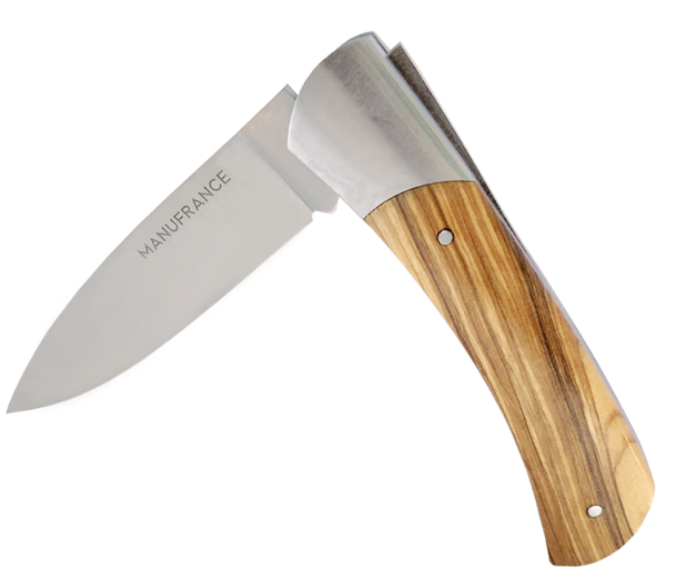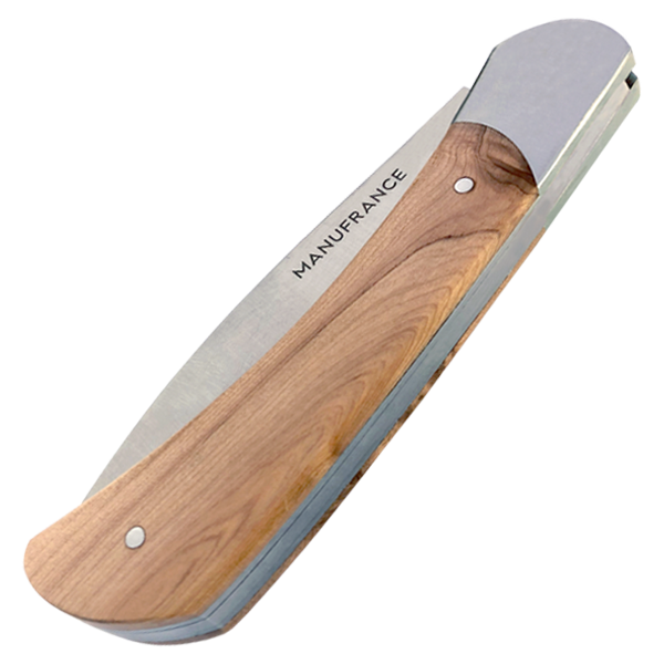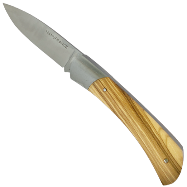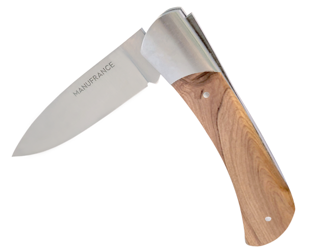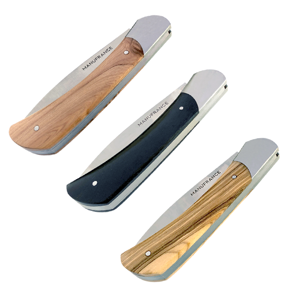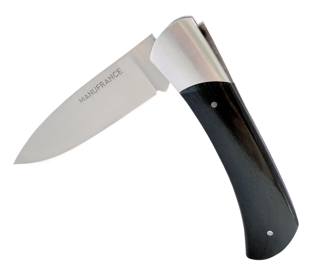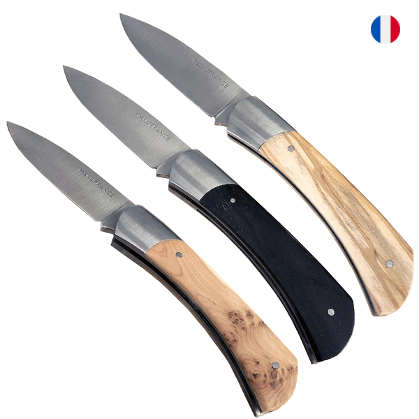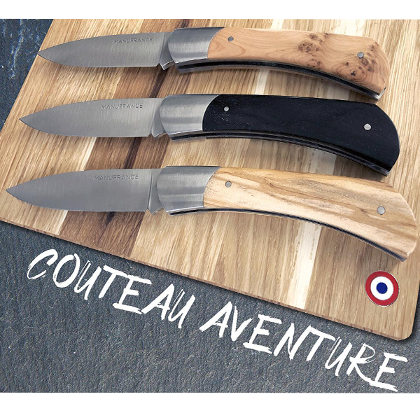 Le nouveau modèle « Aventure » de Manufrance est un couteau fermant aux lignes modernes, pures et dynamiques conservant ses qualités historiques de fiabilité et de robustesse. Léger et compact il trouvera sa place aussi bien sur votre table que dans votre poche ! Il se décline en 3 finitions. La lame du couteau Aventure Manufrance est composée d'un acier inoxydable spécial 12C27 Sandvik. Après découpe il subit un traitement thermique lui assurant le meilleur compromis dureté/résistance. L'émouture (partie tranchante) est assiette sur toute la hauteur de la lame. Après polissage elle est marquée du logo Manufrance. Il en résulte une lame aux qualités exceptionnelles : solide, tranchante et facile à affuter. Le manche est en bois , solide, résistant et très facile d'entretien. Vissée sur le manche. Système de fermeture à cran forcé : une forte pression simultanée sur le dos de la lame et sur le manche permet de replier le couteau. Conseil d'entretien : Ne pas passer au lave-vaisselle ! Laver votre couteau à la main sous un filet d'eau chaude et essuyer le immédiatement. Vous pouvez de temps en temps huiler le bois des manches avec un peu d'huile végétale afin de raviver leur éclat. Aiguisage avec une pierre à aiguiser ou un fusil en acier. Origine : Fabrication 100 % Française.