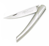 Le couteau de poche Le Thiers plein manche par Manufrance est un véritable partenaire de vie. La version inox vous est proposée avec un manche brillant ou sablé. Monté et fini à la main, ce couteau fermant en acier Sandvick offre la solidité nécessaire à tous les usages du quotidien. Le couteau Le Thiers fermant répond à toutes les exigences de fabrication, d'authenticité, de traçabilité et de territorialité dictées par la charte de le Confrérie du couteau de Thiers, garante de la protection de la marque. Fabrication 100% française et artisanale. - Acier inoxydable trempé 12C27 - Entablure - Double émouture - Cran forcé - Ressort forgé lisse - Montage 3 rivets molleton Vendu en boîte carton avec pochette simili cuir noir.