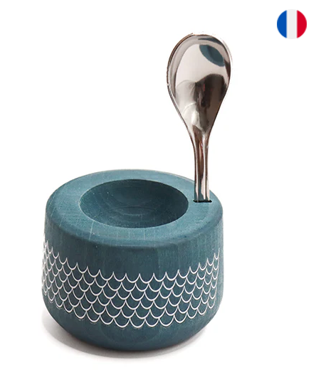 Coffret coquetier en bois avec cuillère