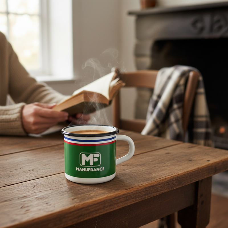Ce mug Manufrance en acier émaillé au look très vintage arbore le célèbre logo MF. Il n'est pas sans rappeler les tasses utilisées par les randonneurs et explorateurs. Léger et très résistant il signe le grand retour du mug rétro dans le quotidien. Fabriqué en France.