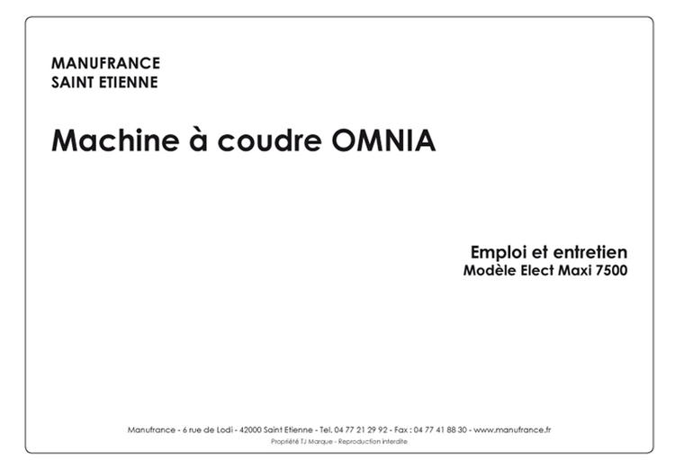 Instructions for use and maintenance of the OMNIA Electric Maxi 7500 sewing machine models. Document created from the original. This manual is available in digital format to be opened with Adobe Reader software (PDF format), or in paper format. For the paper version, you will receive the instructions by mail. For the digital version, you will receive the file at your email address.