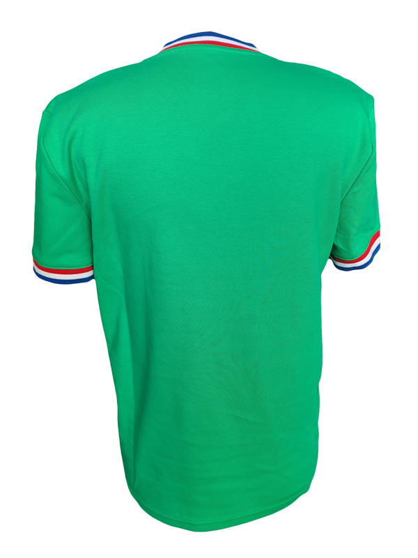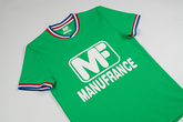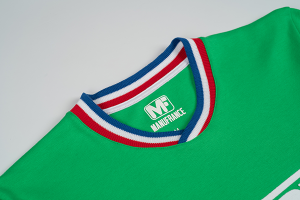 From the MANUFRANCE vintage collection, this t-shirt is a tribute to the famous jersey worn by the AS ST ETIENNE players in 1976. Made in France, it is flocked with the MANUFRANCE logo; it is made of 100% organic cotton for a very soft feel and excellent fit. Straight cut. Turn the T-shirt inside out before washing it at 30° on a short cycle. Avoid tumble drying to prevent the cotton from shrinking and iron inside out.