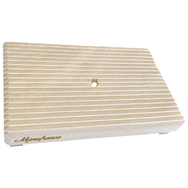 The Manufrance grooved soap dish is made of natural beech wood. Practical, sturdy, and with its very natural appearance, it's the ideal accessory for air-drying your soap thanks to its grooves and drain hole that facilitate water drainage! Made in France. The Manufrance grooved wooden soap dish is the essential accessory that will bring a touch of authenticity and naturalness to your bathroom or kitchen. It is highly resistant to humidity thanks to the beech wood used to make it. The grooves and the central hole allow for optimal water drainage to dry your soap and make it last longer. Finally, it has two feet ensuring perfect stability. The Manufrance grooved soap dish is handcrafted in France. Made from French beech wood from fairly managed forests and bearing the PEFC and FSC labels. The wood used is untreated and not bleached with chlorine. Care instructions: Rub the soap dish with a cloth dampened with cooking oil before first use to protect it from stains. High-quality, meticulous, and 100% French artisanal production. Guaranteed French Origin certification.