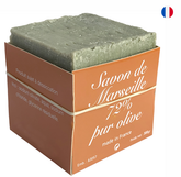 Discover authentic Marseille soap! A natural, hypoallergenic, multi-purpose cube soap in an economical, generous, and practical format. Made in France using the traditional method (exclusively olive oil-based) by a skilled soap maker with authentic expertise. It is cooked in a cauldron using the Marseille process and benefits from expertise passed down from generation to generation of master soap makers. It is made with the utmost respect for tradition. As required by the authentic Marseille soap formula, it is composed of 72% olive oil, which, in addition to moisturizing and nourishing the skin, also provides suppleness and softness. It comes in a 300-gram cube format, a very economical and practical format that is also environmentally friendly. Marseille soap is ideal for washing hands and body and is suitable for all skin types and the whole family. It can also be used for delicate laundry care and even for household cleaning (cleaning floors and surfaces). Directions for use: Apply the soap to wet skin and rub into a lather. Rinse thoroughly with water. Avoid contact with eyes. If contact occurs, rinse eyes thoroughly with clean water. High-quality, meticulous, and 100% French artisanal production. Comes with a cardboard box.