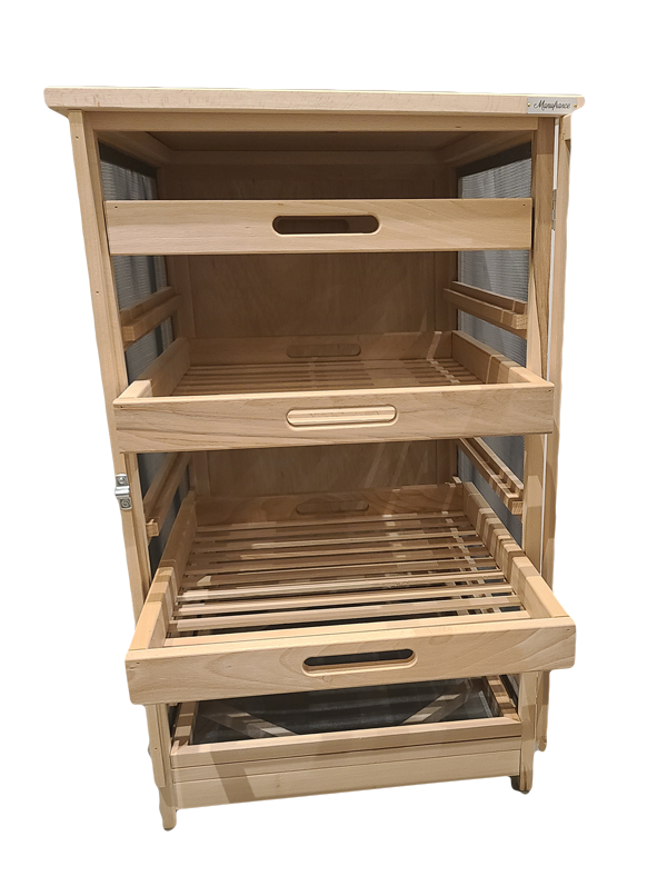 Garde manger version maxi pour conserver les fruits et légumes pendant l'hiver. Grâce à votre garde manger, vous pouvez acheter vos fruits et légumes en automne et les conserver ensuite au sec et à l'abri de la lumière. Les tiroirs permettent de classer fruits et légumes, ail, oignons ou pommes de terre. Il est livré avec 3 tiroirs amovibles. Possibilité de mettre 6 tiroirs au total. Possibilité également de rajouter parmi les tiroirs 1 tiroir "spécial pommes de terre" (attention celui ci est plus haut que les autres). Tous les tiroirs sont disponibles en pièce détachée sur notre site.