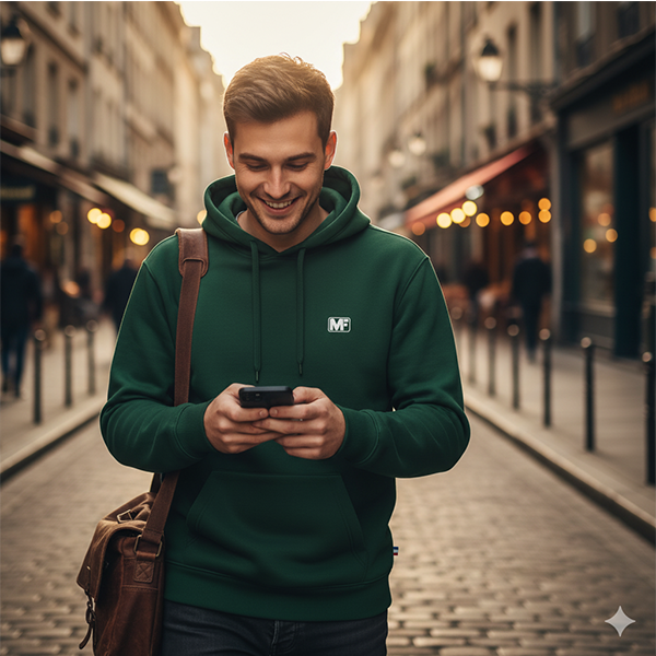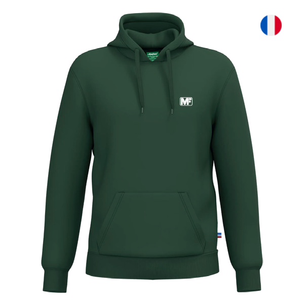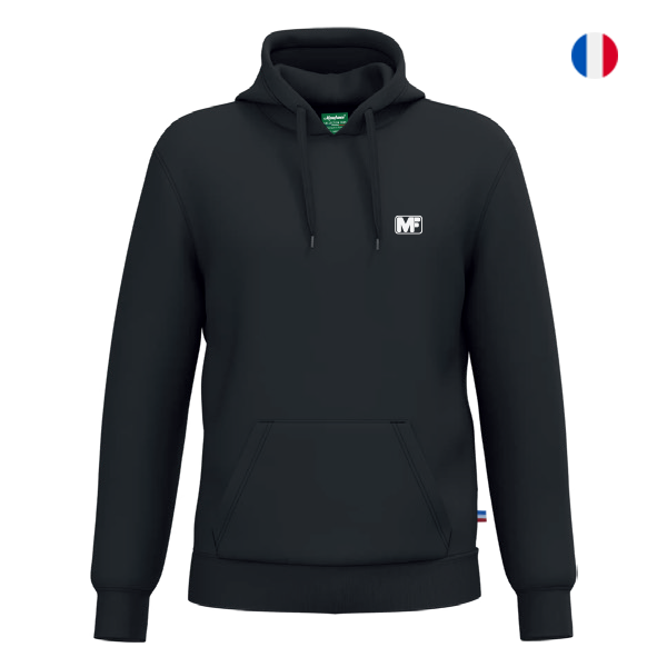 Le + produit : MF discret brodé, bande de renfort à la nuque pour une finition impeccable et durable, poignets et taille côtelés pour un bon ajustement et une isolation contre le froid, poche kangourou pour garder les mains au chaud