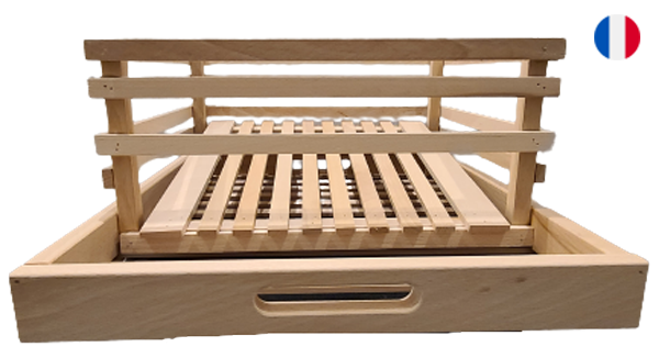 Le tiroir pour notre garde manger est lui aussi conçu en France, de la même façon que le garde manger, dans un atelier qui maîtrise la découpe et l'assemblage. Le bois est issu de forêts françaises ou de forêts européennes.